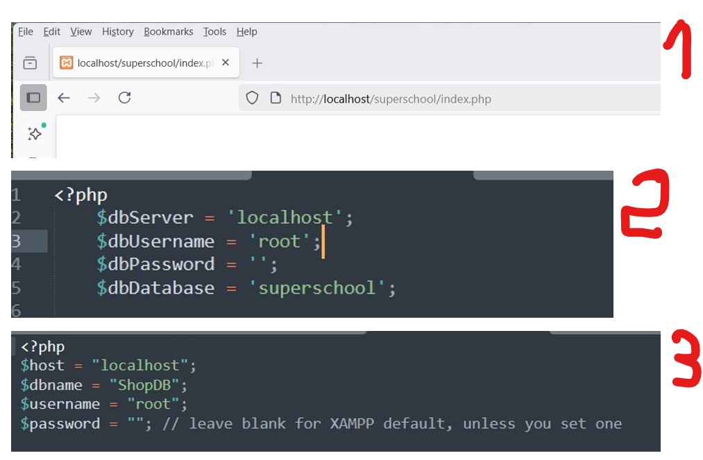When I run the project and write localhost/superschool/index there is no show information on the screen now what can I do?